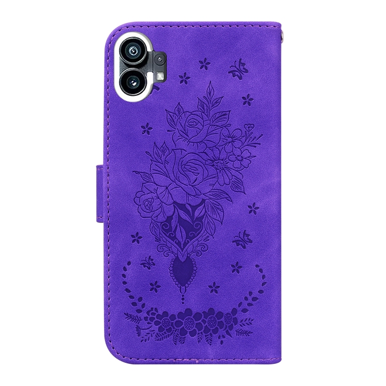 Estuche de Cuero For Nothing Phone 1 con Relieve Mariposa y Rosa (Púrpura)