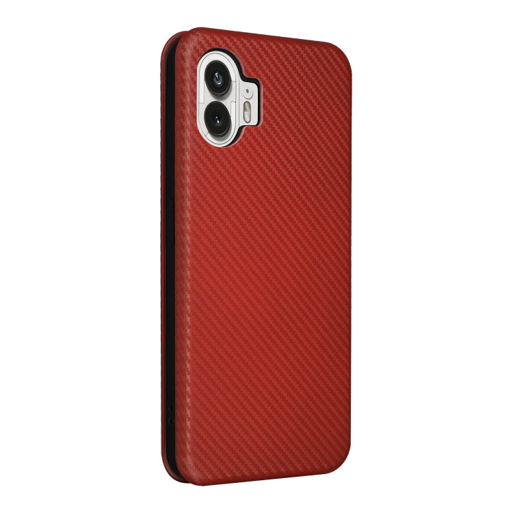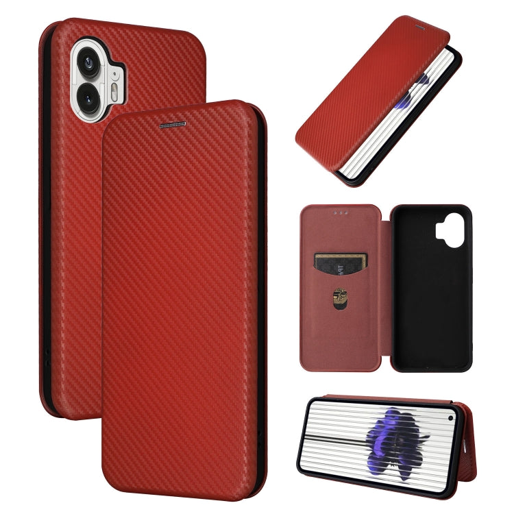Funda de Cuero con Tapa para Nothing Phone 2 con Textura de Fibra de Carbono (Marrón)