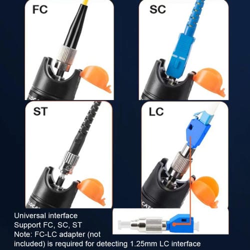 Es compatible con los Conectores estándar FC, SC y ST mediante su interfaz Universal de 2,5 mm.