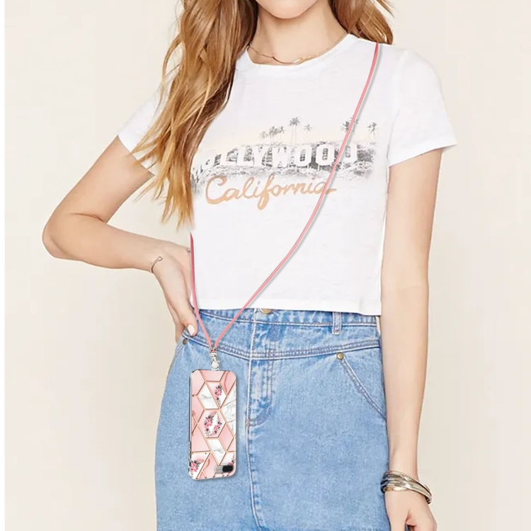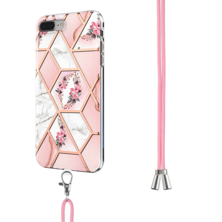 Funda para iPhone 8 Plus / 7 Plus a Prueba de Choques con Flores de Mármol y Cordón (Flor Rosa)