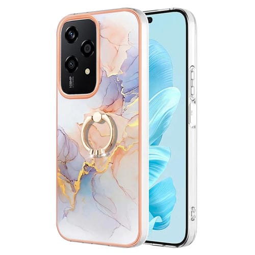 Funda TPU con Patrón Galvanoplastia y Soporte Anillo para Honor 200 Lite (Mármol Blanco Vía Láctea)