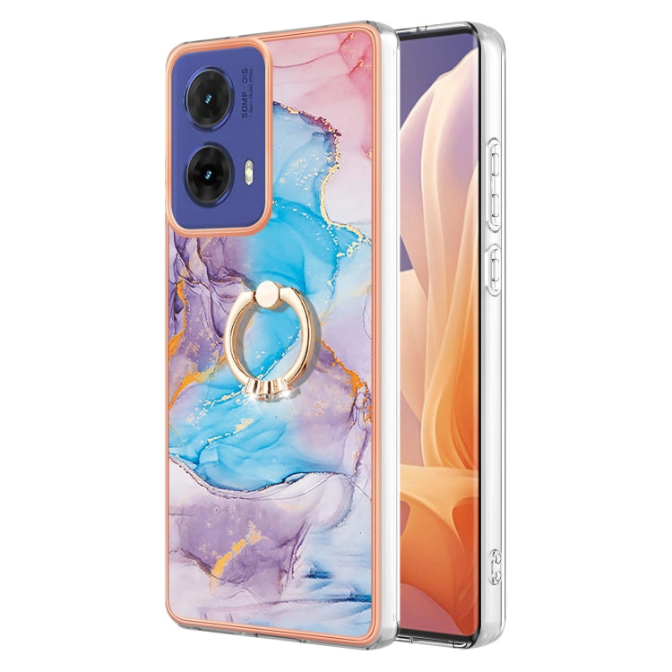 Funda a Prueba de Golpes TPU con Patrón Galvanoplastia y Soporte Anillo para Motorola Moto G85 (Mármol Azul Vía Láctea)