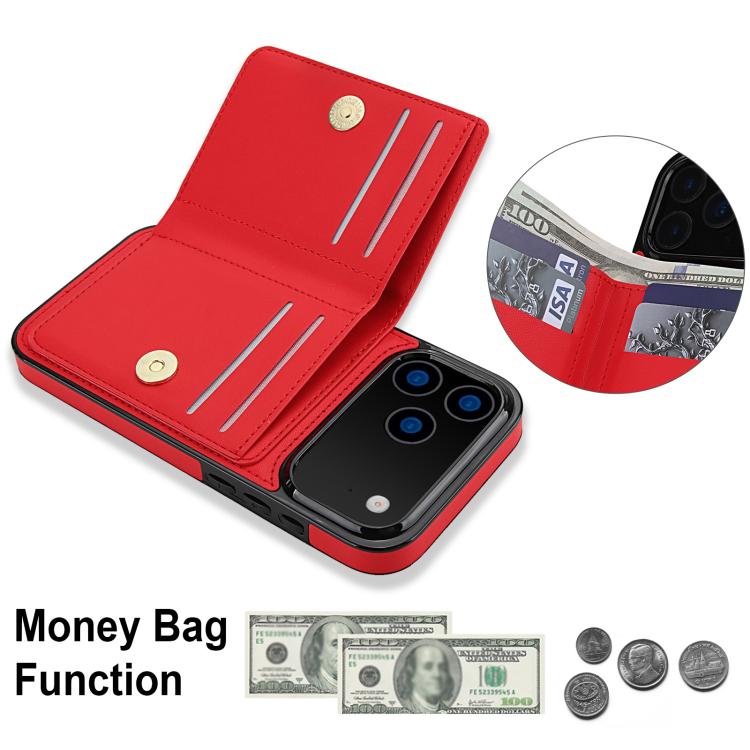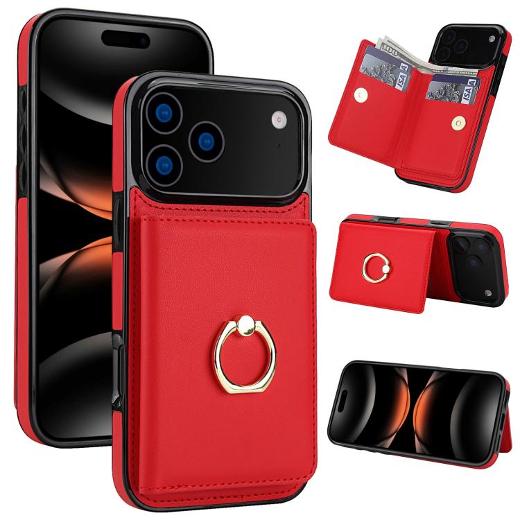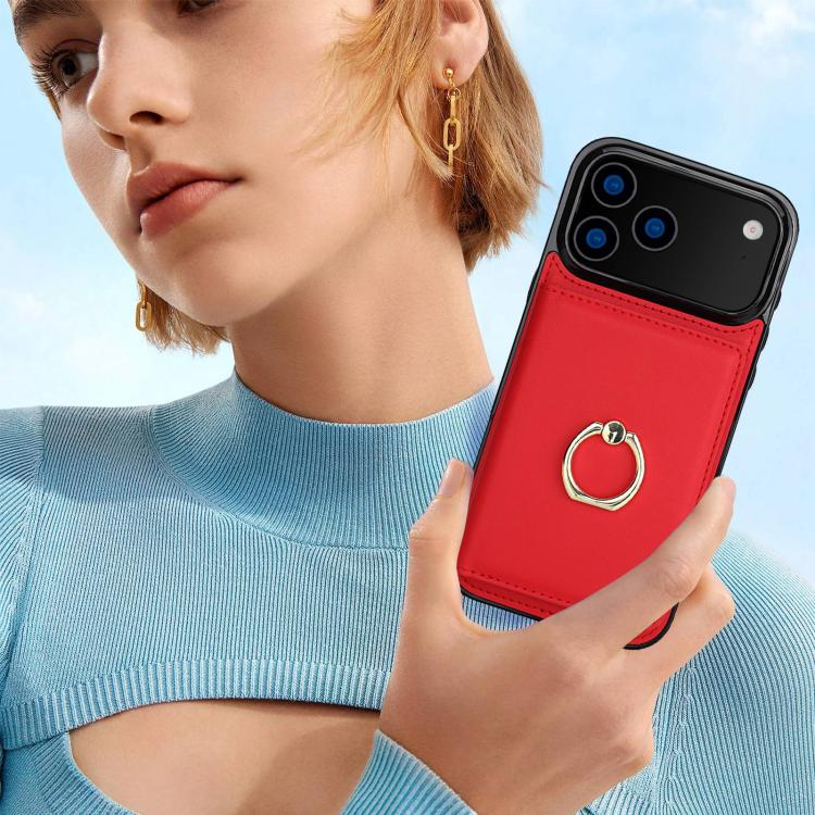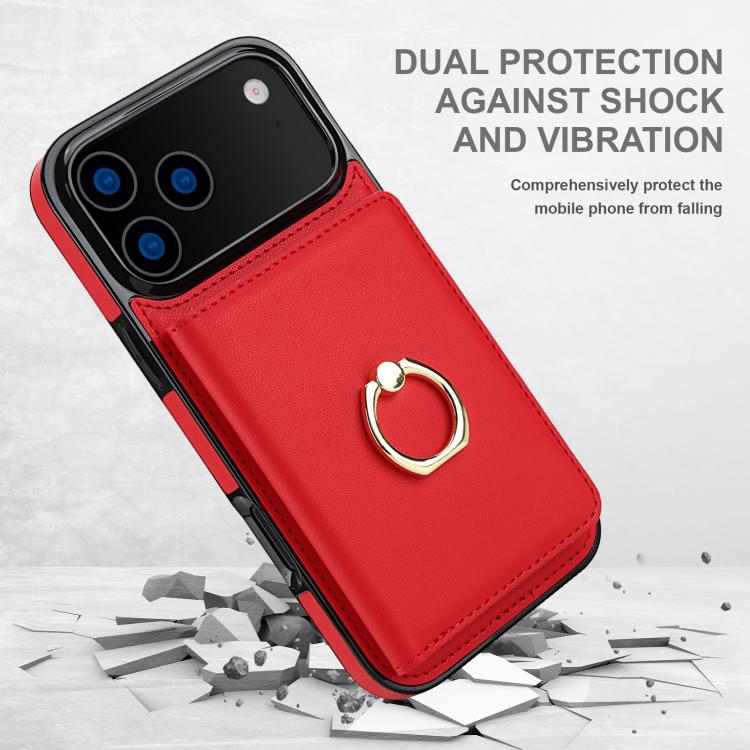 Funda antirrobo RFID para iPhone 17 Pro Max con anillo para tarjetas (roja)