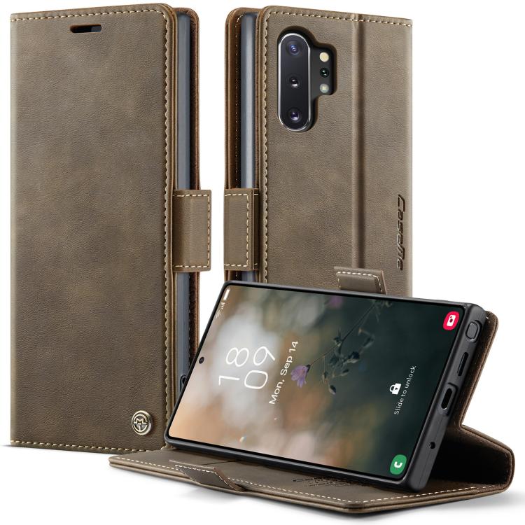 Funda CaseMe 033 para Samsung Galaxy Note10+, forro de piel de becerro, microfibra y bloqueo RFID (café)