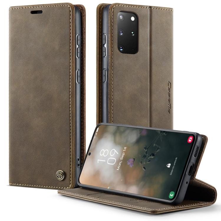 Funda CaseMe 033 para Samsung Galaxy S20+, forro de piel de becerro, microfibra y bloqueo RFID (café)