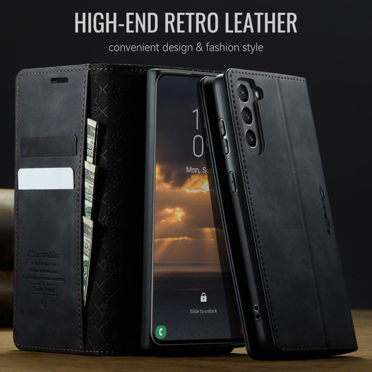 Funda CaseMe 033 para Samsung Galaxy S21 5G, forro de piel de becerro, microfibra, con bloqueo RFID (negra)