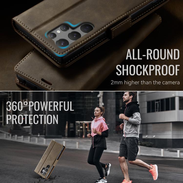Funda CaseMe 033 para Samsung Galaxy S23 Ultra 5G, forro de piel de becerro, microfibra, con bloqueo RFID (café)