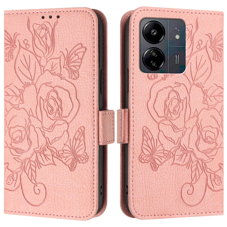 Funda de Cuero Antirrobo Rfid con Relieve Rosa para Redmi 13C 4G Global / Xiaomi Poco C65 (Rosa)
