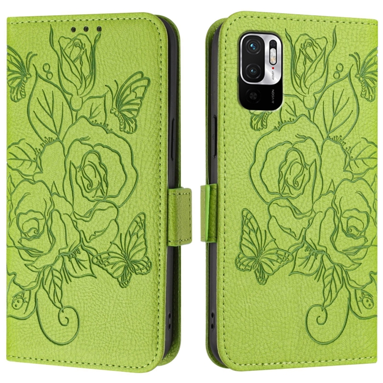 Funda de Cuero Antirrobo Rfid con Relieve Rosa para Redmi Note 10 5G/Note 10T 5G (Verde)