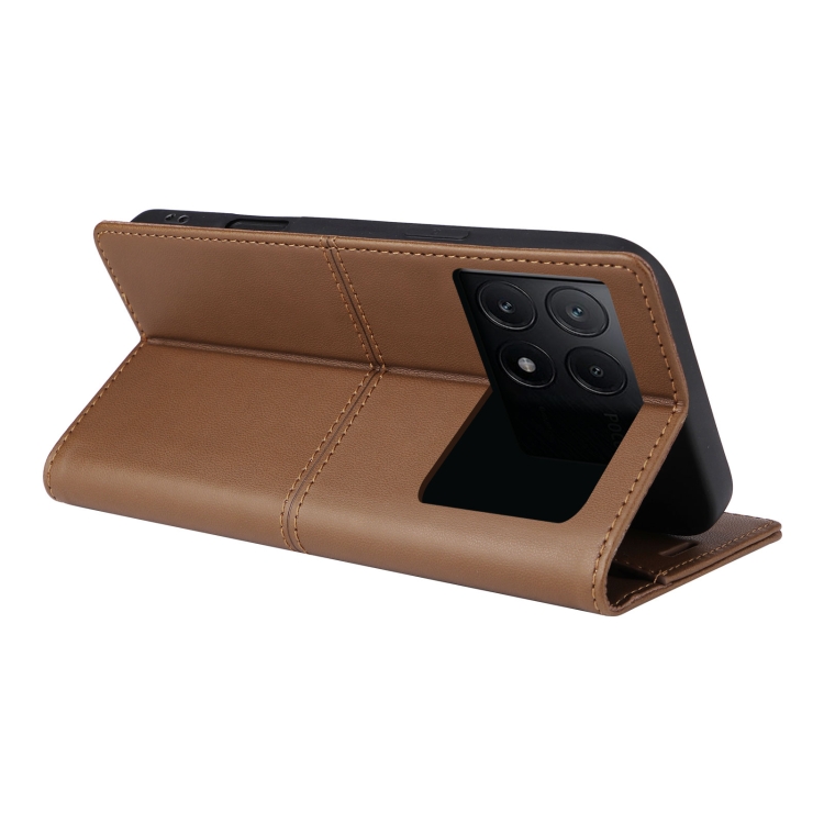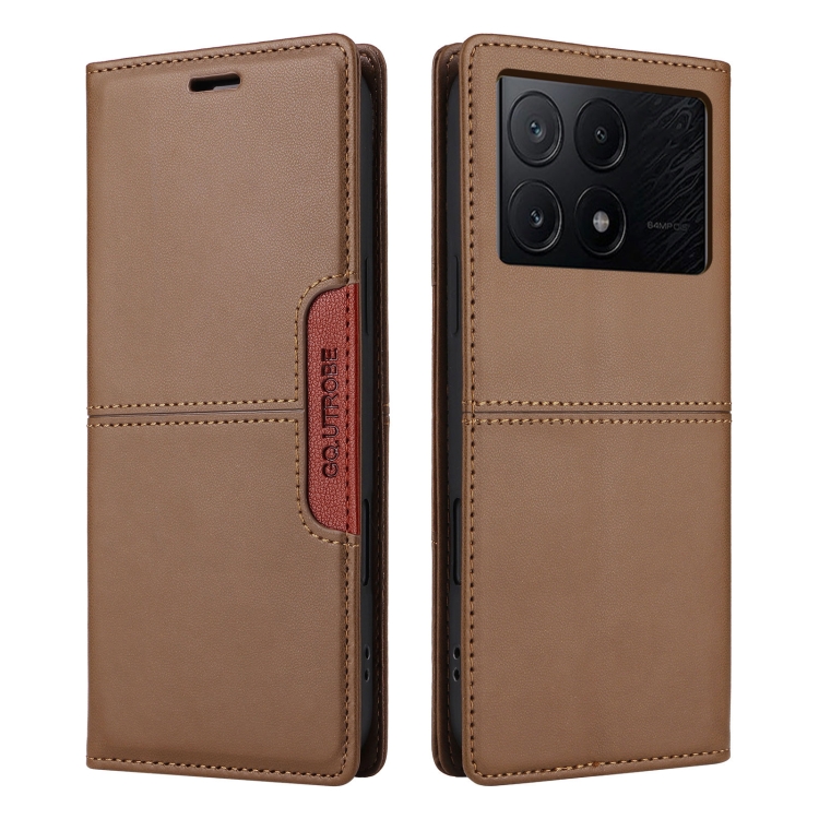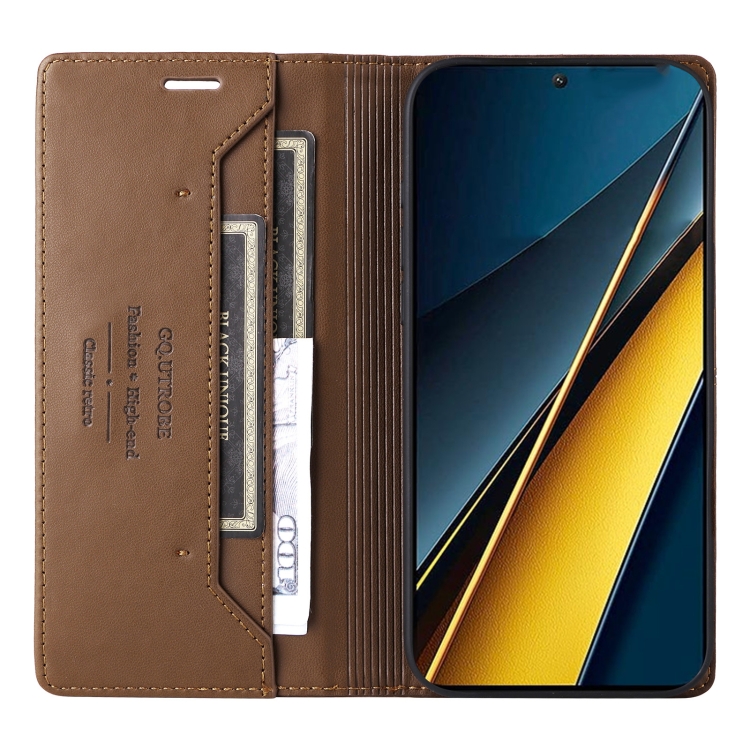 Funda de Cuero Antirrobo Rfid Gqutrobe G01 para Xiaomi Poco X6 Pro (Marrón)