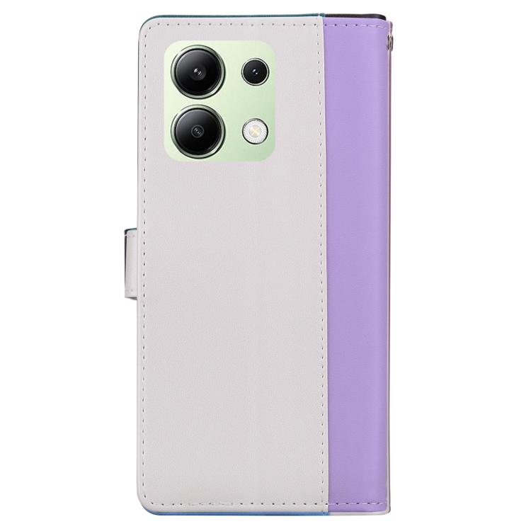 Funda de cuero bicolor con relieve para Redmi Note 13 4G (morado y blanco)