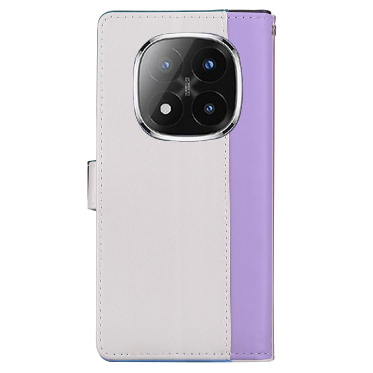 Funda de cuero bicolor con relieve para Redmi Note 14 Pro+ 5G / Poco X7 5G (morado y blanco)