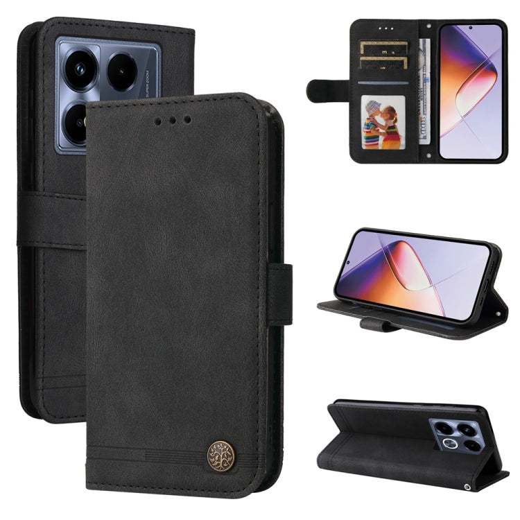 Funda de Cuero con Botones de Metal y Diseño Árbol de la Vida para Infinix Note 40 4G (Negro)