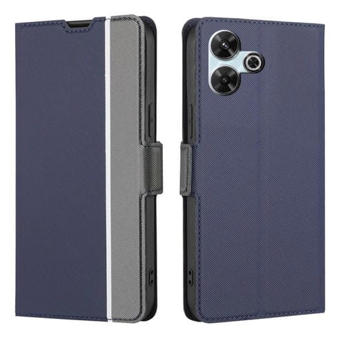 Funda de Cuero con Botones Laterales y Textura de Sarga para Redmi 13 4G (Azul)