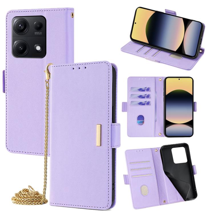 Funda de cuero con cadena cruzada para Redmi Note 14S 4G (morado)