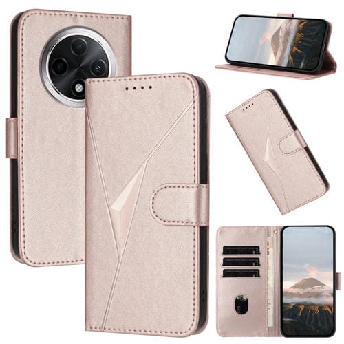 Funda de Cuero con Hebilla y Diseño Triangular para Redmi A3 Pro (Oro Rosa)