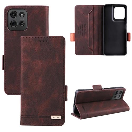 Funda de Cuero con Cierre Magnético para Motorola Moto G75 5G (Marrón)