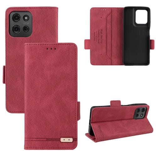 Funda de Cuero con Cierre Magnético para Motorola Moto G75 5G (Rojo)