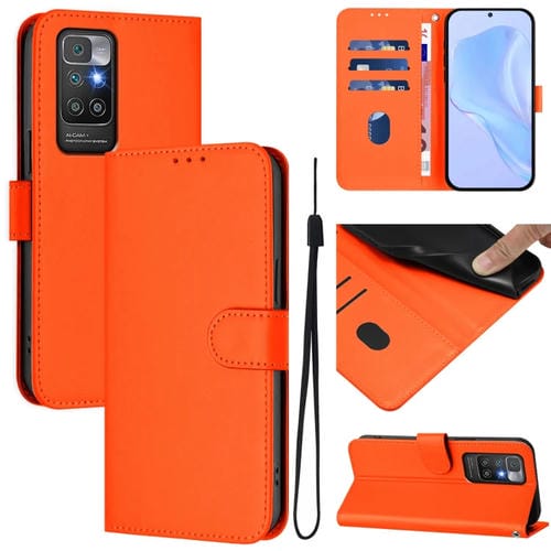 Funda de Cuero con Cordón para Redmi 10 4G 2021 con Sensación de Piel Global En Color Sólido (Naranja)