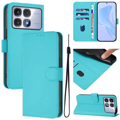 Funda de Cuero con Cordón para Redmi K70 Ultra con Tacto de Piel Global y Color Sólido (Azul Lago)