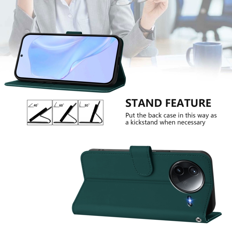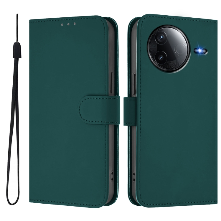 Funda de Cuero con Cordón para Redmi K80/K80 Pro, Color Sólido y Tacto Suave (Verde Oscuro)