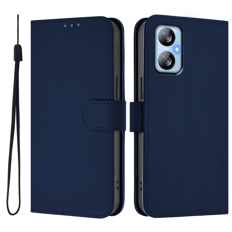 Funda de Cuero con Cordón para Teléfono BlackView A52/A52 Pro Skin Feel (Azul Marino)