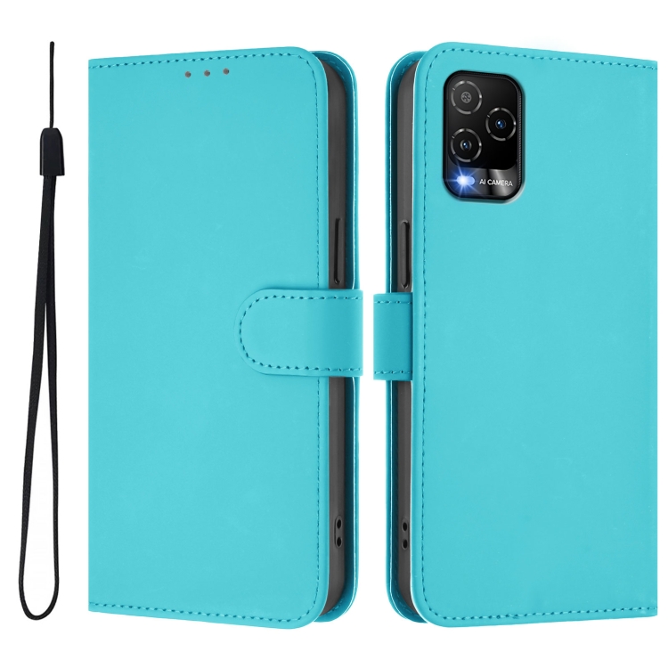 Funda de cuero con cordón para teléfono Blu View 5 Pro Skin Feel (Azul Lago)