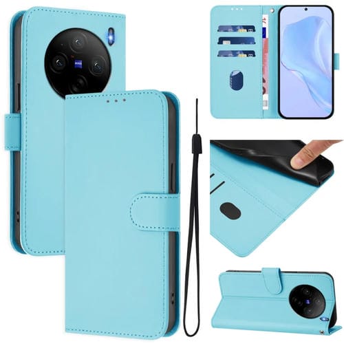 Funda de Cuero con Cordón para Teléfono con Diseño de Piel de Color Liso y Tacto Agradable para Vivo X100S 5G (Azul Cielo)