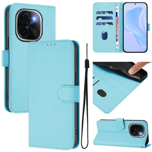 Funda de Cuero con Cordón para Teléfono con Diseño de Piel Sintética de Color Sólido y Tacto Indio para Vivo Iqoo Z9S Pro 5G (Azul Cielo)