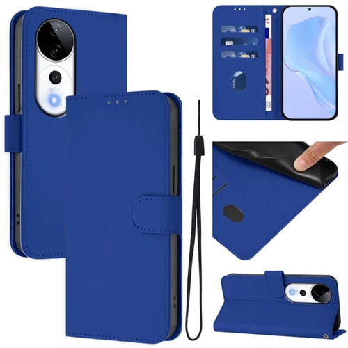 Funda de Cuero con Cordón para Teléfono con Sensación de Piel de Color Sólido para Vivo S19 Pro (Azul Oscuro)