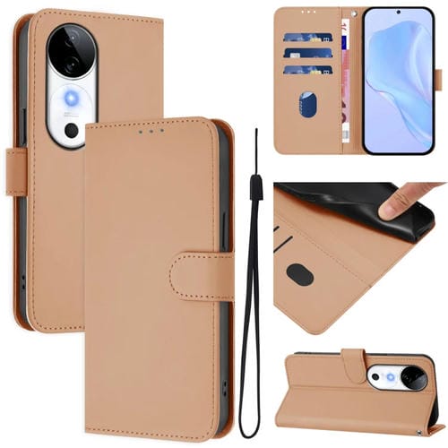 Funda de Cuero con Cordón para Teléfono con Textura de Piel de Color Liso para Vivo S19 (Desnudo)