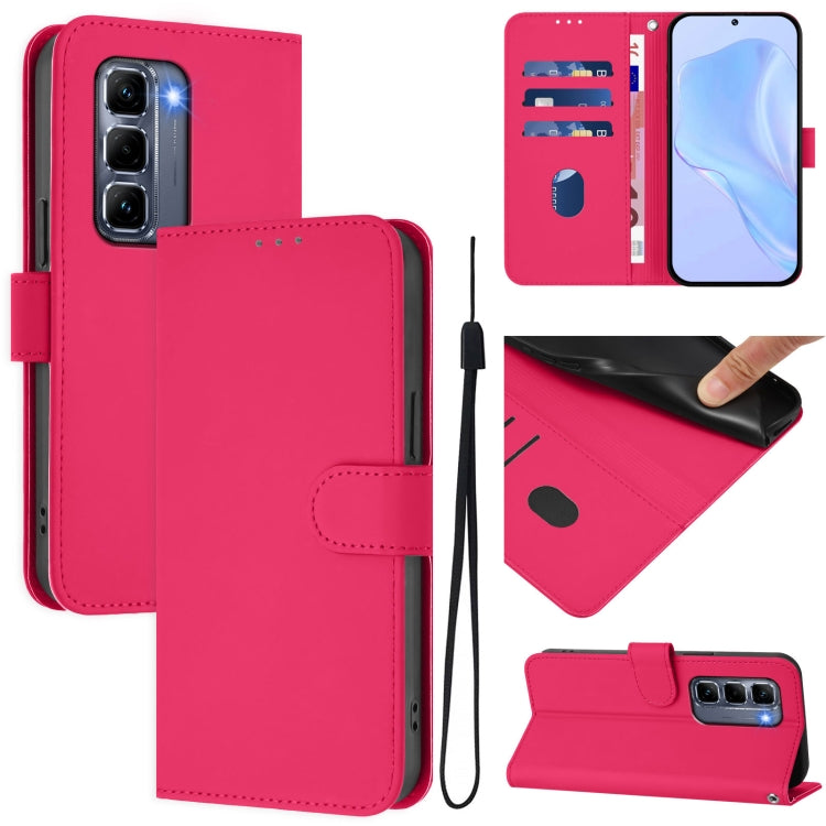 Funda de Cuero con Cordón para Infinix Hot 50 Pro+ 4G con Tacto de Piel (Rosa Rojo)