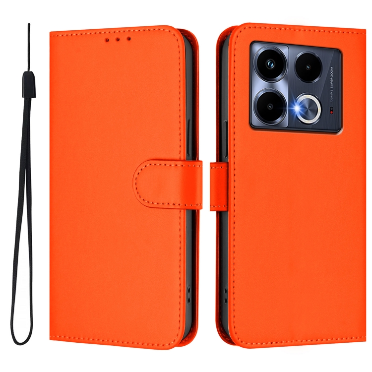 Funda de Cuero con Cordón para Teléfono Infinix Note 40 5G con Tacto de Piel (Naranja)
