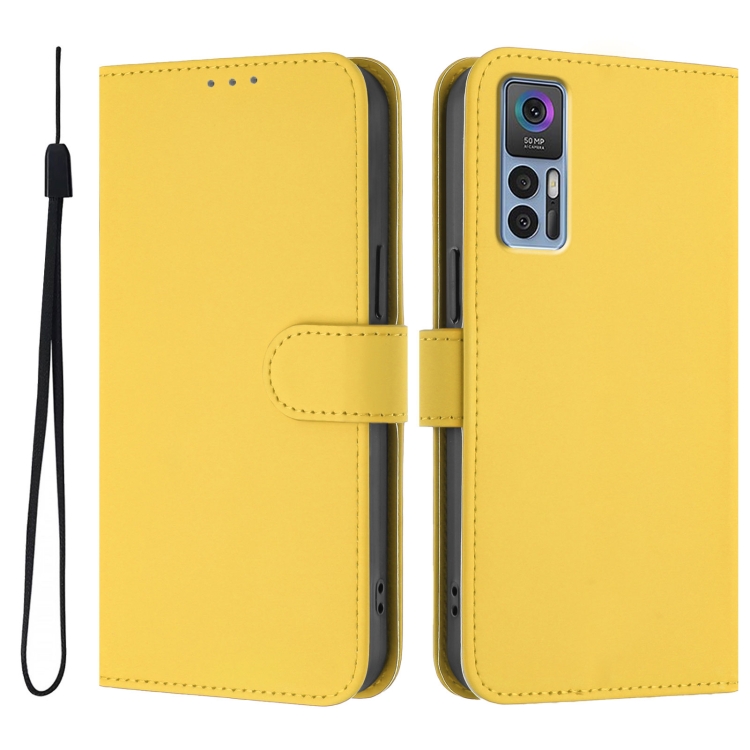 Funda de Cuero con Cordón para Teléfono TCL 30 4G 30 5G 30+ Tacto Piel (Amarillo Limón)