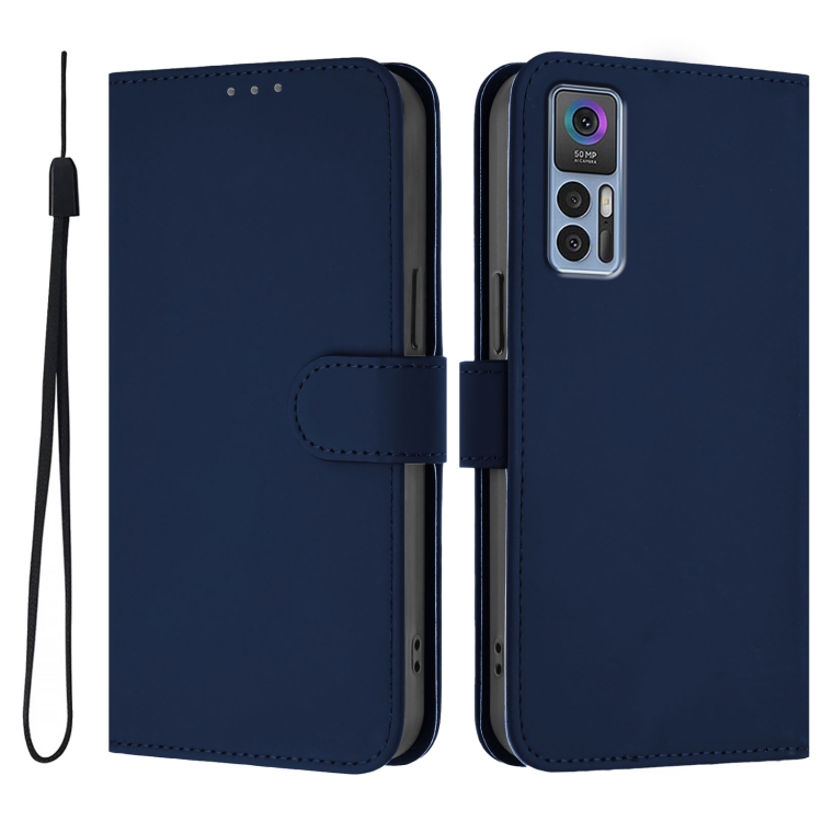 Funda de Cuero con Cordón para Teléfono TCL 30 4G / 30 5G / 30+ Tacto Piel (Azul Marino)