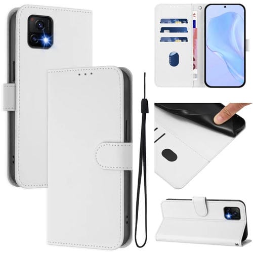 Funda de Cuero con Cordón para Teléfono Vivo Y52S 5G / Iqoo U3 / Y31S 5G con Tacto de Piel de Color Sólido (Blanco)