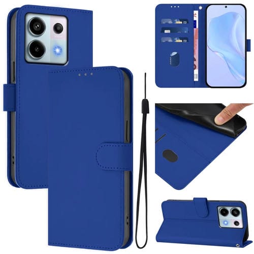 Funda de Cuero con Cordón para Teléfono Xiaomi Poco X6 5G con Sensación de Piel Global En Color Sólido (Azul Oscuro)