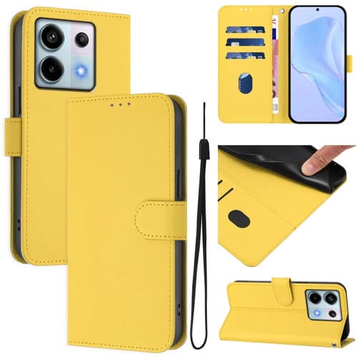 Funda de Cuero con Cordón para Teléfono Xiaomi Poco X6 5G con Tacto de Piel Global y Color Sólido (Amarillo Limón)
