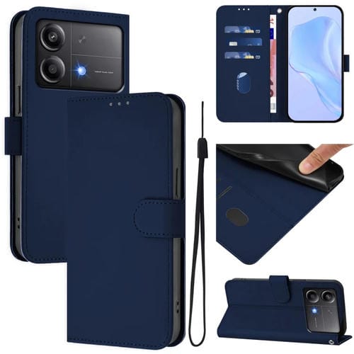 Funda de Cuero con Cordón para Teléfono Xiaomi Poco X6 Neo 5G con Sensación de Piel Global En Color Sólido (Azul Marino)