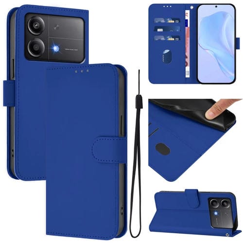 Funda de Cuero con Cordón para Teléfono Xiaomi Poco X6 Neo 5G con Sensación de Piel Global En Color Sólido (Azul Oscuro)