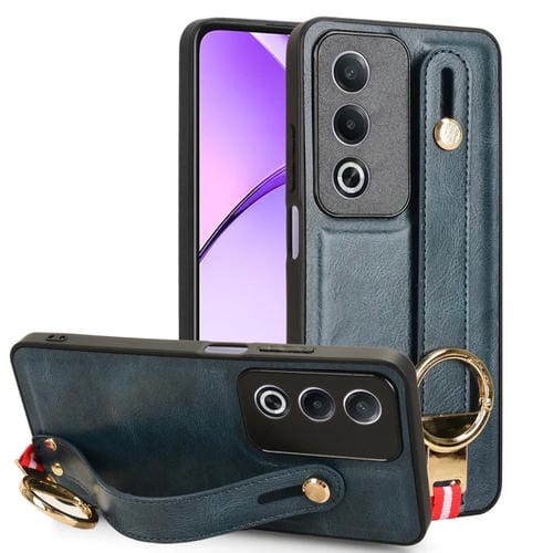 Funda de Cuero con Correa para la Muñeca para Oppo K12X 5G/A3 Pro Global (Azul)