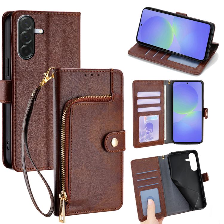 Funda de cuero con cremallera para Samsung Galaxy A36 5G (marrón)