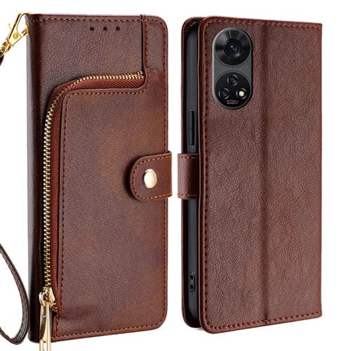 Funda de Cuero con Cremallera para Teléfono ZTE Anshin (Marrón)