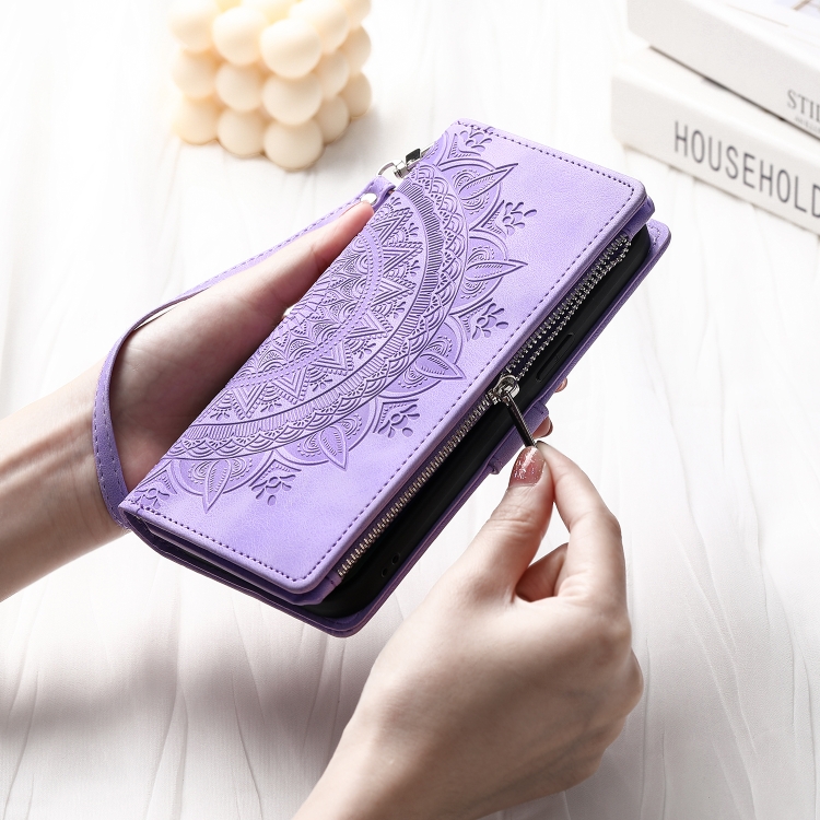 Funda de Cuero con Cremallera y Múltiples Tarjetas para Xiaomi Redmi Note 14 5G (Morado)