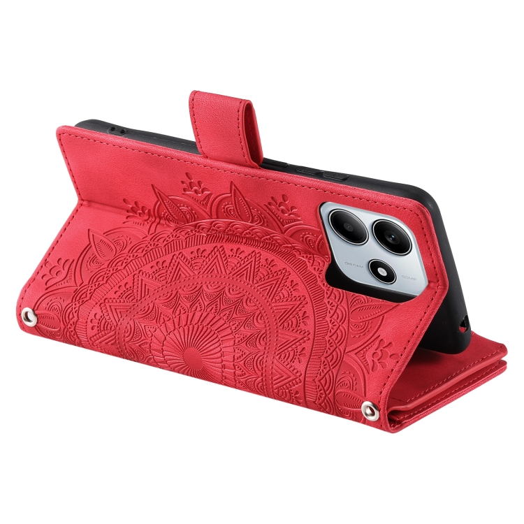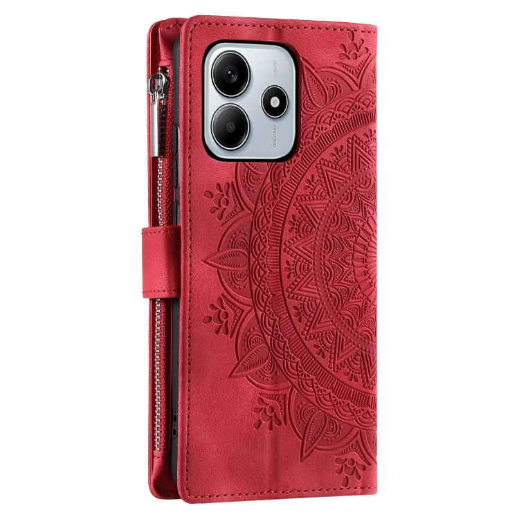 Funda de Cuero con Cremallera y Múltiples Tarjetas para Xiaomi Redmi Note 14 5G (Rojo)