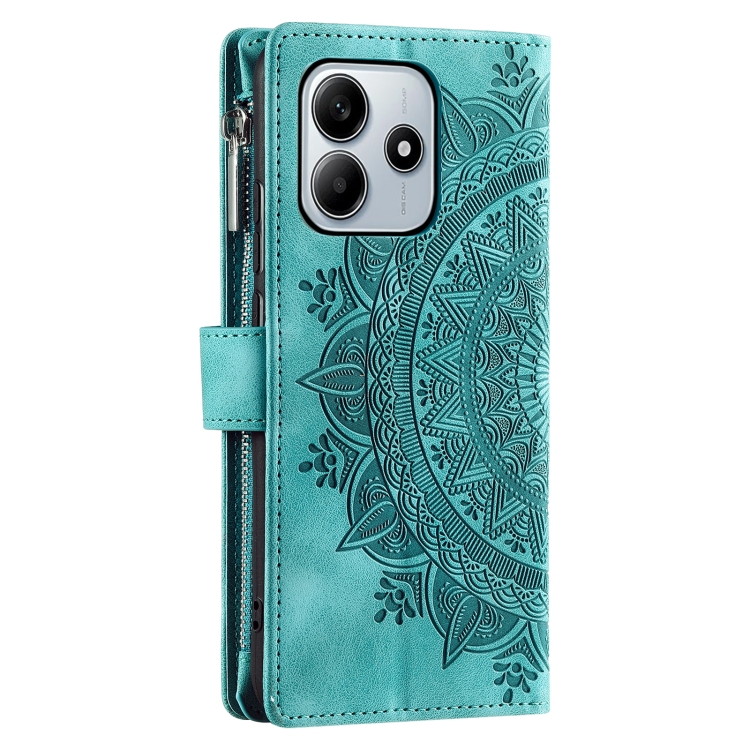 Funda de Cuero con Cremallera y Múltiples Tarjetas para Xiaomi Redmi Note 14 5G (Verde)