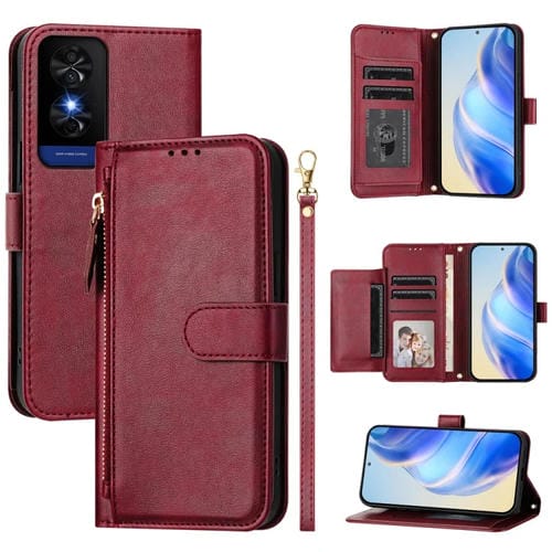 Funda de Cuero para TCL 50 5G 50 Xe Nxtpaper 50 Xe con Cremallera y Ranuras (Rojo Oscuro)