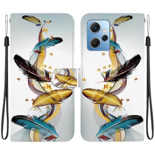 Funda de Cuero con Dibujo de Colores y Textura de Cristal Global para Redmi Note 12 4G (Plumas de Mariposa Doradas)