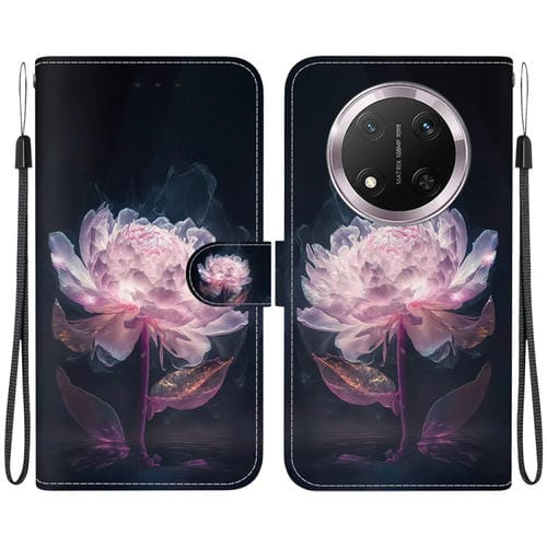 Funda de Cuero Honor X9C con Dibujo de Colores y Textura de Cristal (Peonía Morada)