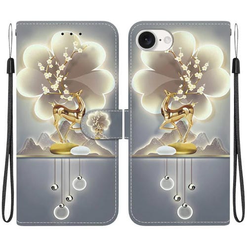 Funda de Cuero con Dibujo de Colores y Textura de Cristal para iPhone 16E (Ciervo Sika)